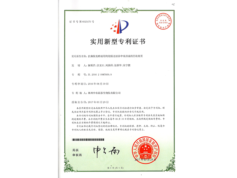 抗菌肽發(fā)酵液用陶瓷膜過濾器中殘留液的回收裝置
